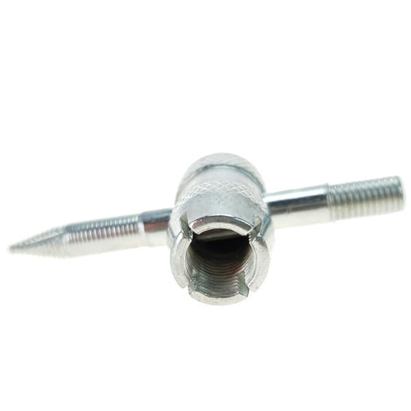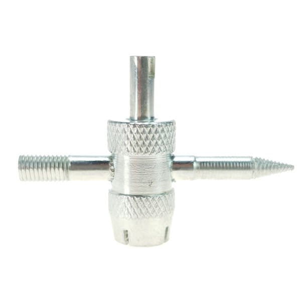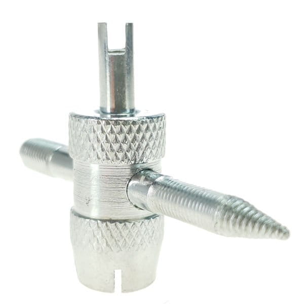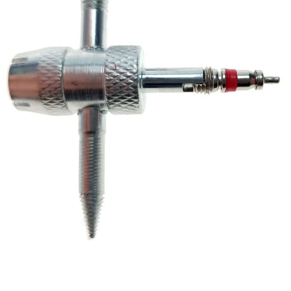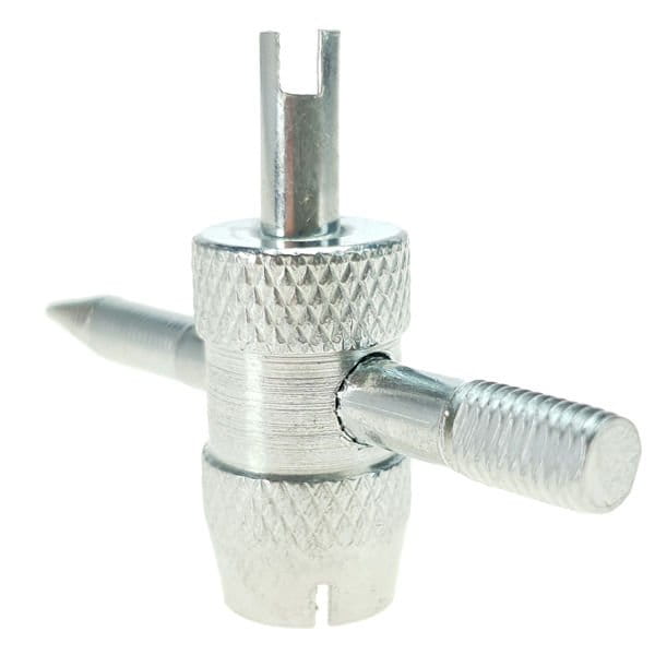 Przyrząd 4 funkcyjny do kalibrowania gwintów wentyli samochodowych. Umożliwia łatwe odkręcenie czapeczki zaworu, wkładki zaworu oraz naprawę gwintu zaworu koła.
