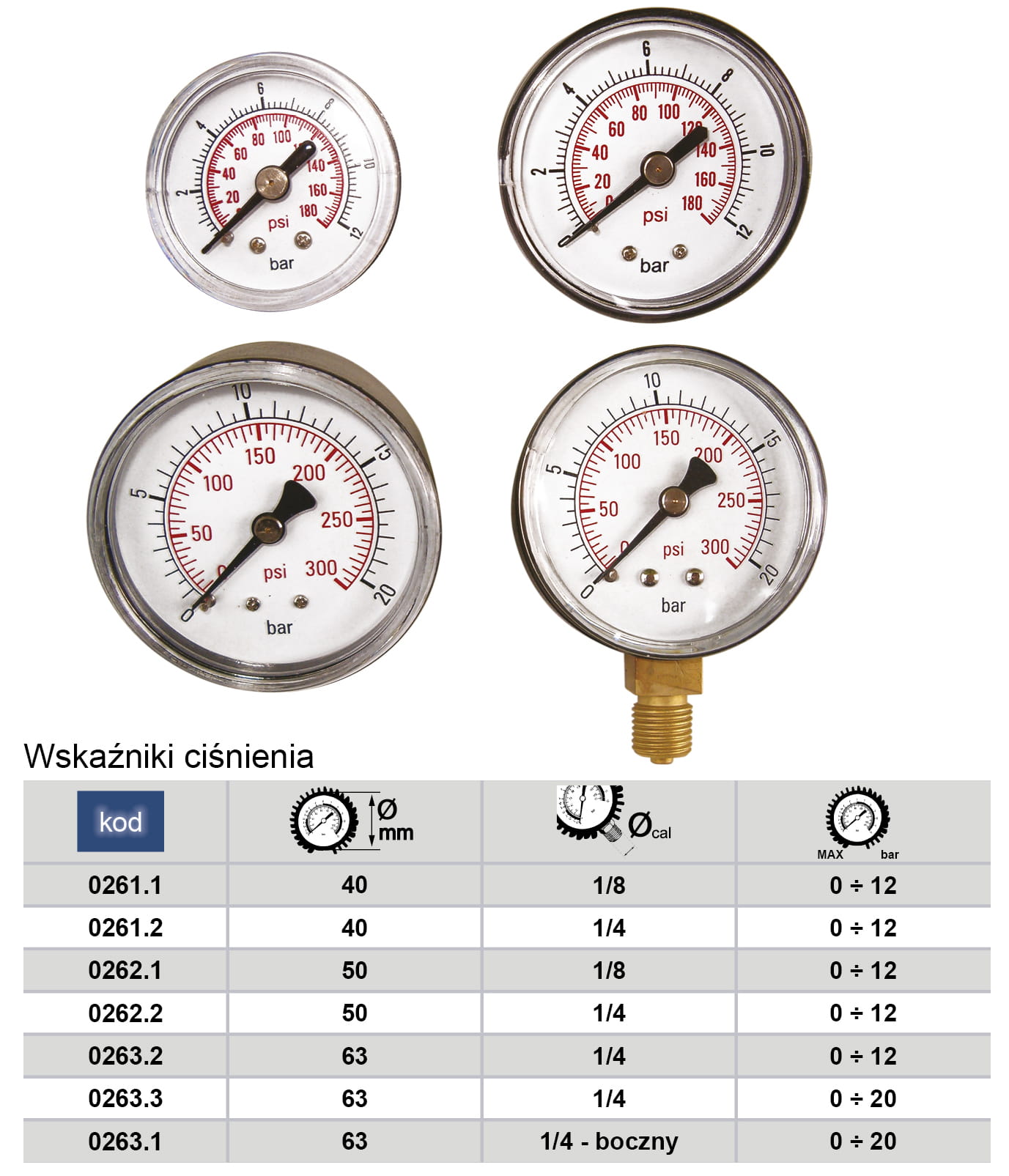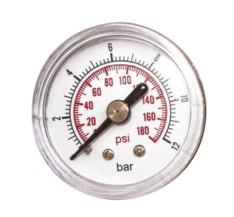 Średnica manometru to 40mm, posiada dużą bardzo czytelną kolorową skalę.