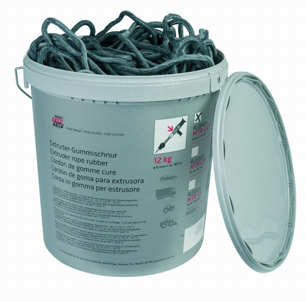 Opakowanie 12 kg w formie sznura wskazuje, że jest to produkt dedykowany dla wyspecjalizowanych serwisów, które zajmują się naprawą opon wielkogabarytowych. Do konfekcji i aplikacji niezbędne jest użycie extrudera.
