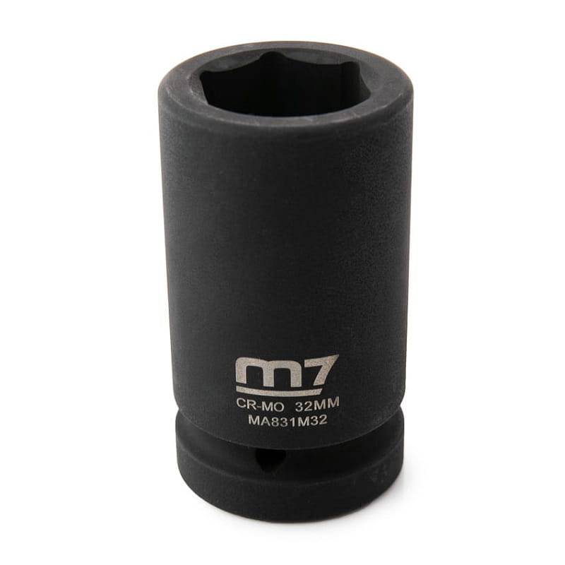 Jeśli szukasz nasadki udarowej, która poradzi sobie z najtrudniejszymi zadaniami w warsztacie lub na budowie, model M7 1" 32mm to wybór, któremu możesz zaufać. Nasadka została wykonana z wysokiej jakości stali chromowo-molibdenowej (CR-MO), dzięki czemu charakteryzuje się wyjątkową odpornością na przeciążenia, uderzenia oraz zużycie mechaniczne. Jej zwiększona długość (90 mm) pozwala na bezproblemowy dostęp do głęboko osadzonych śrub, co znacznie podnosi komfort pracy, zwłaszcza w ograniczonej przestrzeni.