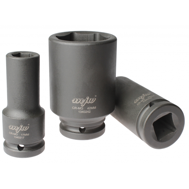 Nasadka udarowa długa 3/4" 22mm marki MJW to profesjonalne narzędzie stworzone do pracy z urządzeniami pneumatycznymi, które działają w bardzo ciężkich warunkach oraz pod zmiennym obciążeniem. Wykonana ze stali chromowo-molibdenowej CrMo, zgodnie z normą DIN 3121, gwarantuje wysoką wytrzymałość oraz długą żywotność nawet przy intensywnym użytkowaniu.