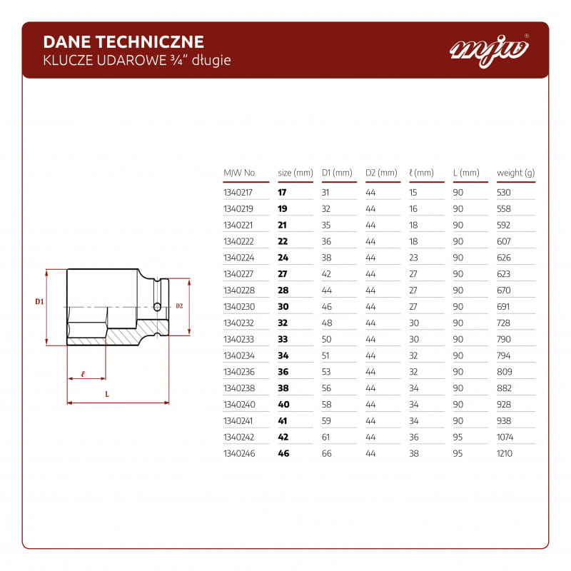Specyfikacja techniczna nasadki 22mm MJW