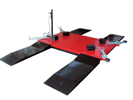 Podnośnik płytowy AT-2H o udźwigu 2000 kg przeznaczony do podnoszenia samochodów w celu jednoczesnego demontażu i montażu wszystkich kół. Podnośnik posiada napęd pneumatyczny i mechaniczną podwójną blokadę, która zabezpiecza przed gwałtownym opadnięciem płyty podnoszącej w przypadku uszkodzenia miecha pneumatycznego lub przewodów doprowadzających sprężone powietrze.