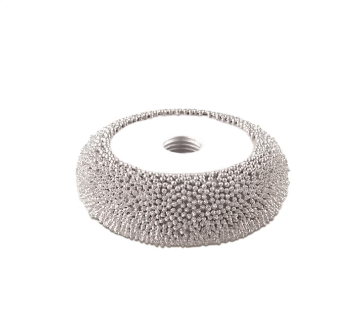 Zaokrąglony kształt ściernicy umożliwia utrzymanie stałego kontaktu z powierzchnią opony na dużej powierzchni narzędzia, co przekłada się na równomierne i skuteczne szorstkowanie. Produkt jest zaprojektowany z myślą o wygodzie operatora i wysokiej wydajności pracy w profesjonalnych warsztatach wulkanizacyjnych.