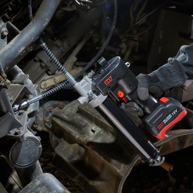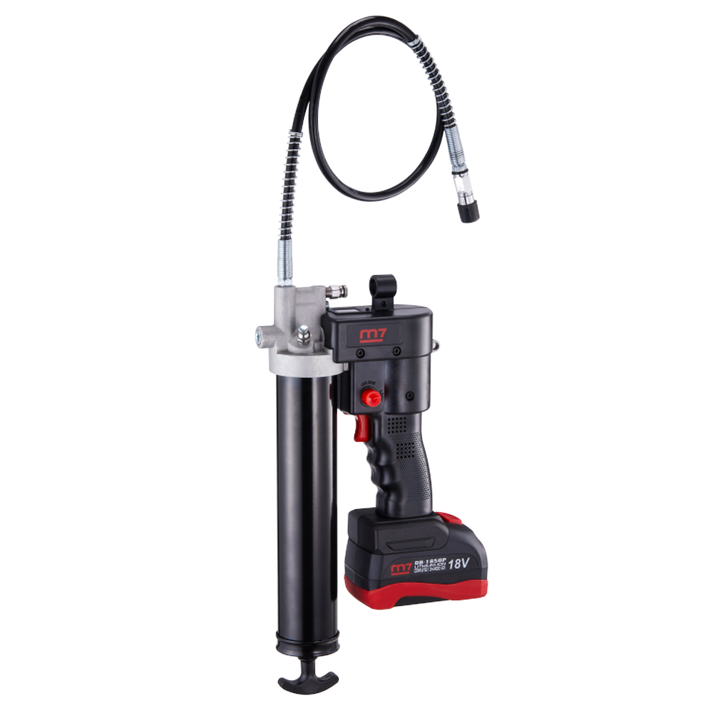 DGG-102A1 M7 to profesjonalna bezprzewodowa smarownica zasilana akumulatorem litowo-jonowym 18V o pojemności 5.0Ah. Urządzenie oferuje wysokie ciśnienie robocze do 480 bar (7000 PSI), umożliwiające precyzyjne i szybkie aplikowanie smaru nawet w najtrudniejszych warunkach.