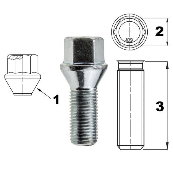 Śruba do kół / felg stożek M14x1,25 - K17 - 28 mm
