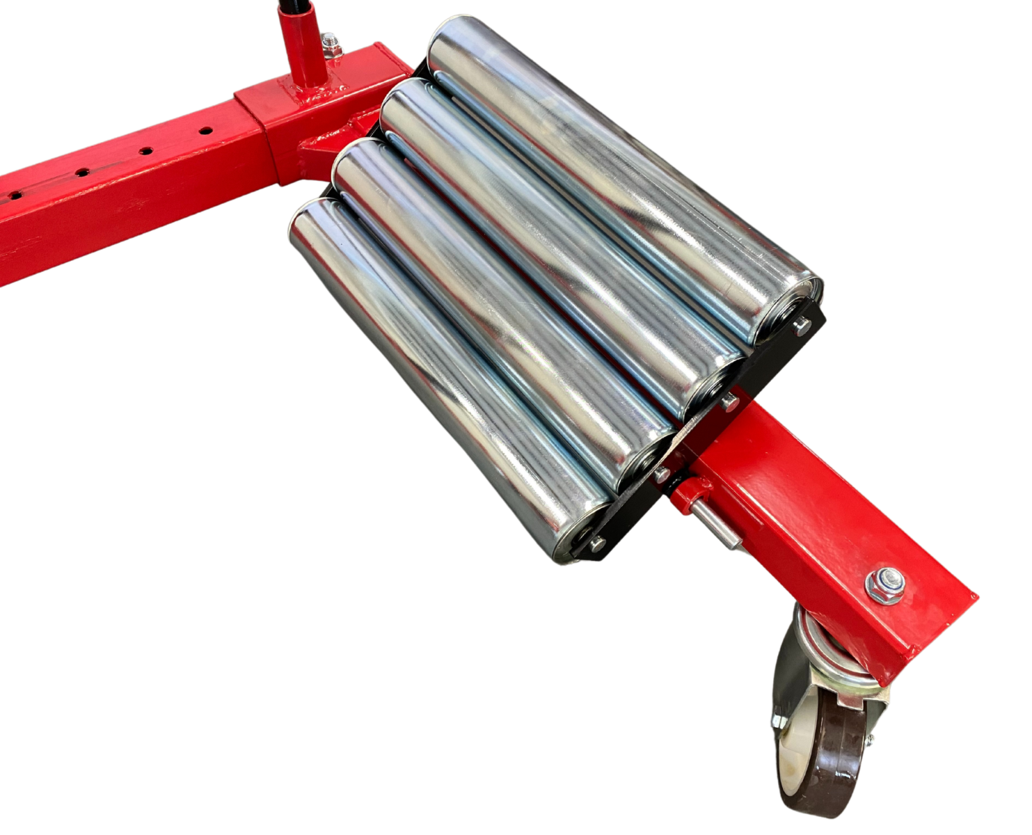 Dodatkowo transporter posiada mechanizm blokujący wałeczki, które umożliwiają łatwe obracanie opon z szerokim bieżnikiem. Wałeczki można ustawić w ośmiu różnych pozycjach, zapewniając jeszcze większą kontrolę i bezpieczeństwo podczas obsługi kół.