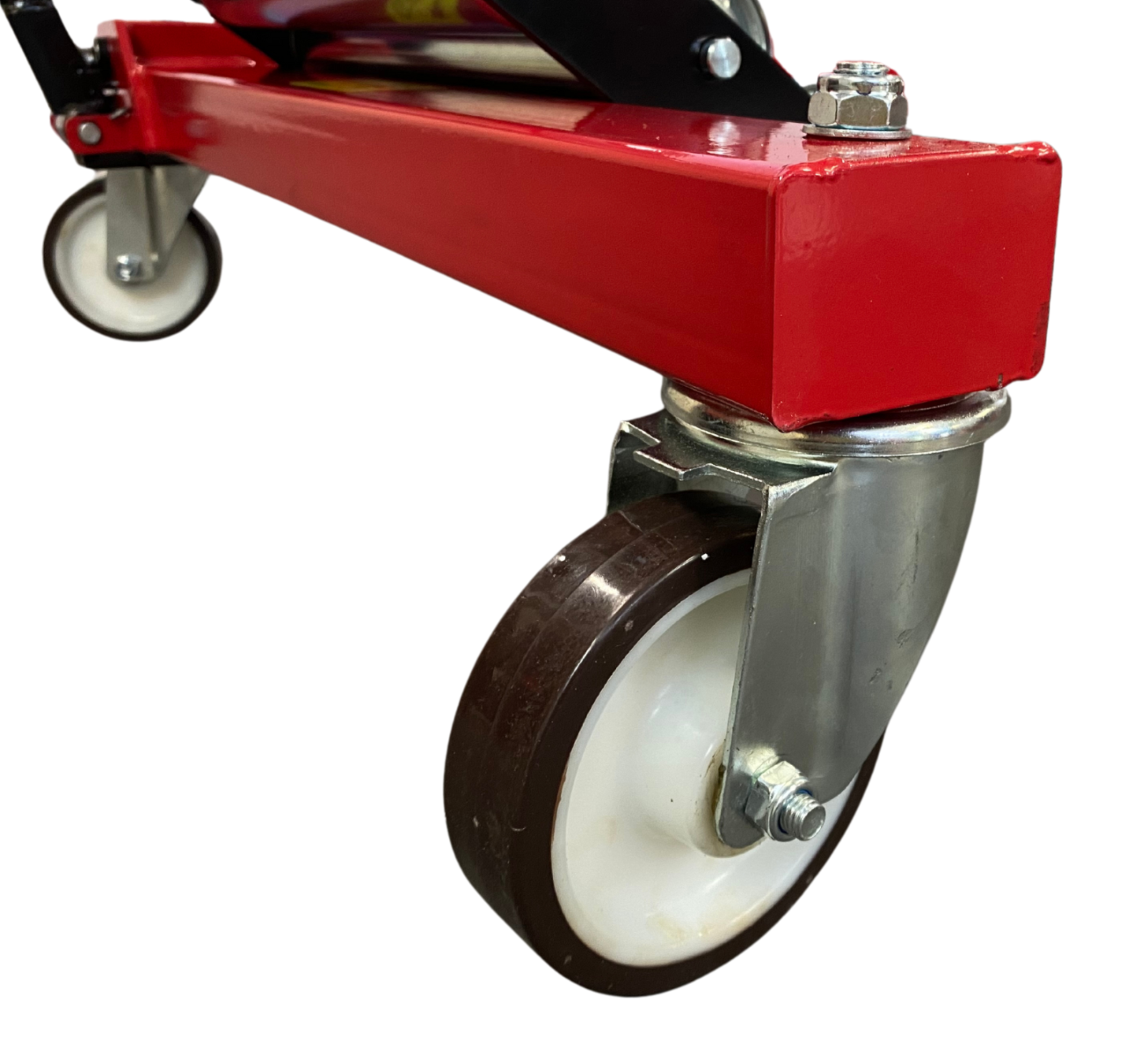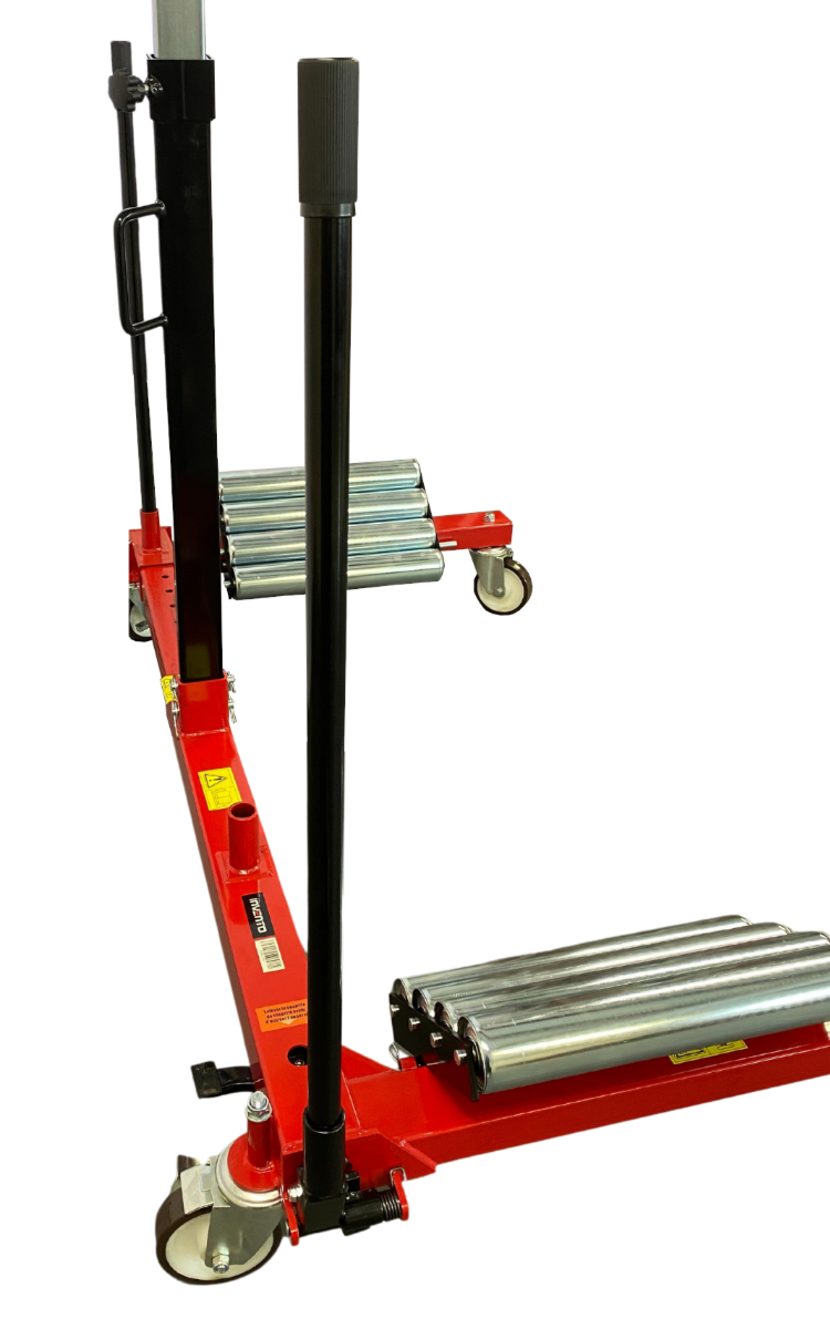 Podnośnik hydrauliczny został wyposażony w mocne ramię podporowe, które równoważy ułożenie koła i gwarantuje stabilność podczas podnoszenia i transportu. Ramię podtrzymujące dopasowuje się do ruchu koła, ułatwiając manewrowanie oraz minimalizując ryzyko uszkodzeń zarówno koła, jak i operatora.