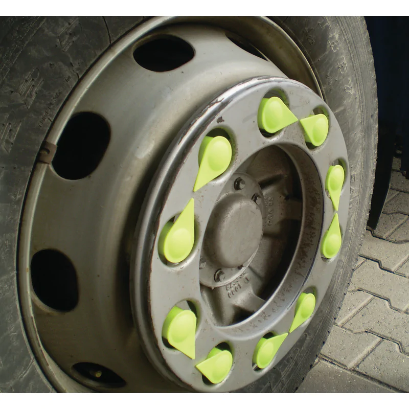 CHECKPOINT DUSTITE to wskaźnik luzowania śrub i nakrętek połączony jednocześnie z nakładką ochronną zabezpieczającą śrubę/nakrętkę przed brudem i korozją. Zaprojektowany został do współpracy z kołami wyposażonymi w kołpak felgi lub pierścień ochronny na obręcz. Wskaźnik pasuje do nakrętek i śrub na klucz o rozmiarze 33 mm. Żółty jaskrawy kolor ułatwia monitorowanie stanu dokręcenia kół i szybkie zauważenie momentu luzowania się nakrętek.