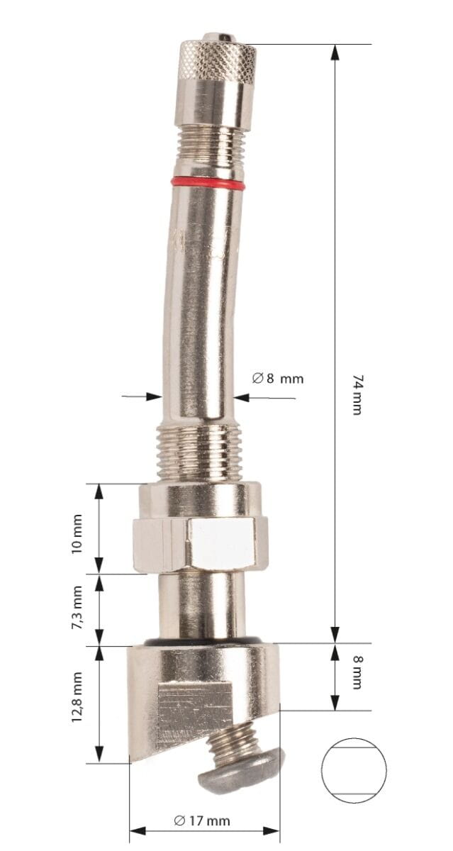 - Wysokość zaworu: 76,5 mm – uniwersalne dopasowanie do większości typów kół ciężarowych.