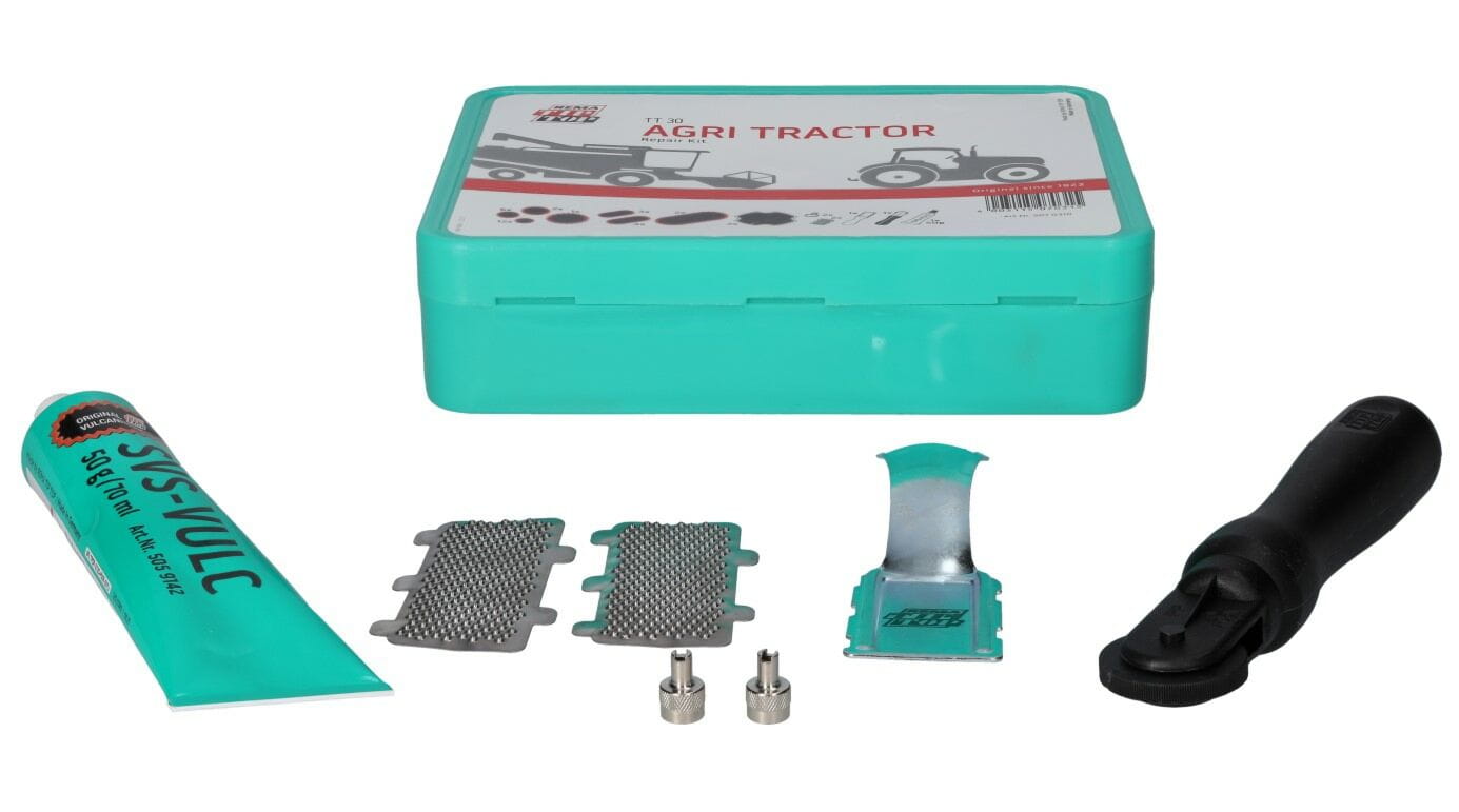 Zestaw do naprawy dętek w traktorze TT 30 to kompletny zestaw, który zapewnia szybką i skuteczną naprawę dętki traktorowej (rolniczej) w przypadku jej przebicia lub uszkodzenia. Dzięki swojej uniwersalności i przenośności, umożliwia szybką interwencję nawet podczas jazdy, co minimalizuje czas przestoju.