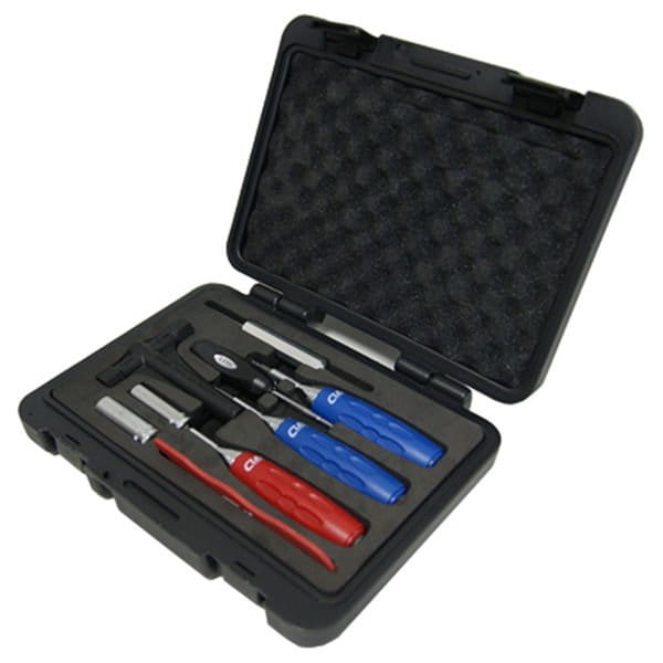 Profesjonalny zestaw narzędzi CUB przeznaczony do kompleksowej obsługi czujników i zaworów TPMS, zarówno z zaworami metalowymi, jak i gumowymi. Zawiera wszystkie niezbędne elementy do bezpiecznego i precyzyjnego montażu oraz demontażu, zgodnie z zaleceniami producentów czujników. Narzędzia zapewniają odpowiedni moment dokręcania, co jest kluczowe dla prawidłowego działania systemu monitorowania ciśnienia w oponach i zapobiegania uszkodzeniom.