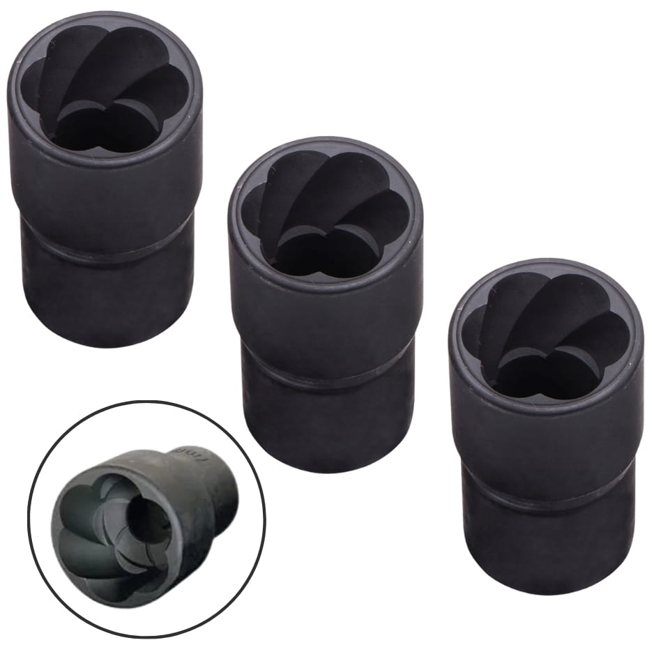 Nasadki wchodzące w skład zestawu zostały zaprojektowane tak, aby podczas ich nabijania na śrubę spiralne krawędzie wgryzały się w nakrętkę, zapewniając maksymalną przyczepność i umożliwiając odkręcenie uszkodzonych lub obrobionych śrub. To rozwiązanie znacząco ułatwia pracę, redukując ryzyko dalszego uszkodzenia śruby oraz narzędzia.
