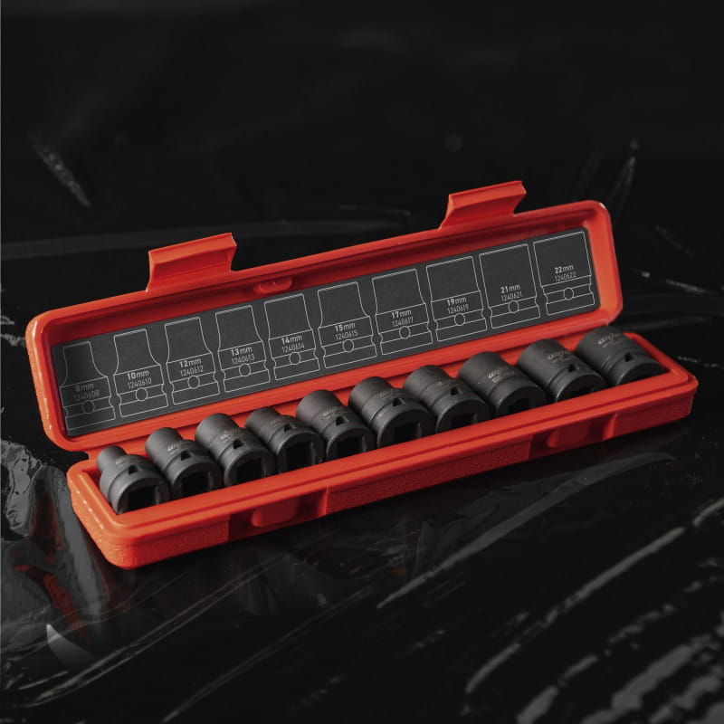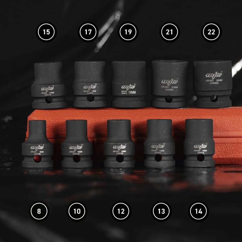 Zestaw nasadek udarowych 1/2" 10 sztuk MJW sprawdzi się w każdym profesjonalnym zakładzie mechanicznym, warsztacie wulkanizacyjnym