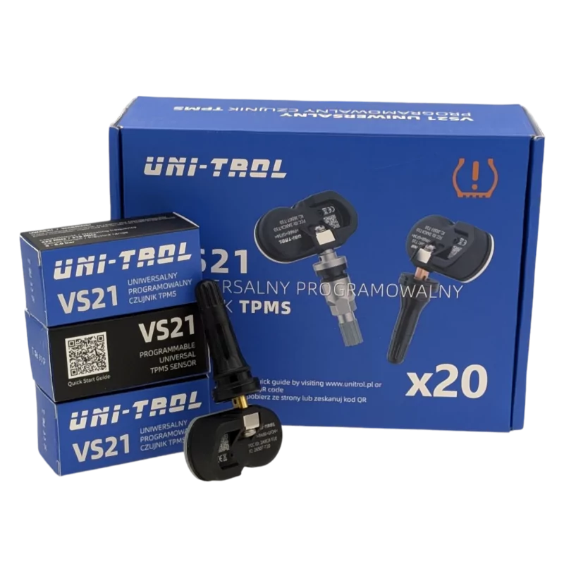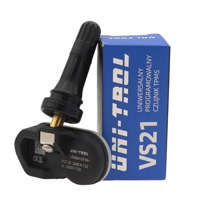 Uni-Trol VS-21 to zaawansowany, programowalny czujnik TPMS, który zastępuje fabryczne czujniki w samochodach osobowych i dostawczych. Dzięki szerokiej bazie danych obejmującej 98% pojazdów, może być stosowany w autach europejskich, amerykańskich i azjatyckich. Programowanie odbywa się przy użyciu testerów Uni-Trol TPM 200 lub ADT 500, co umożliwia dostosowanie czujnika do każdego pojazdu.