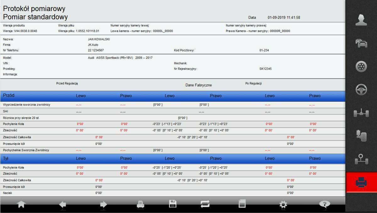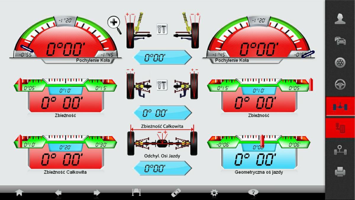 - Pomiar wszystkich kątów zawieszenia w czasie rzeczywistym.
