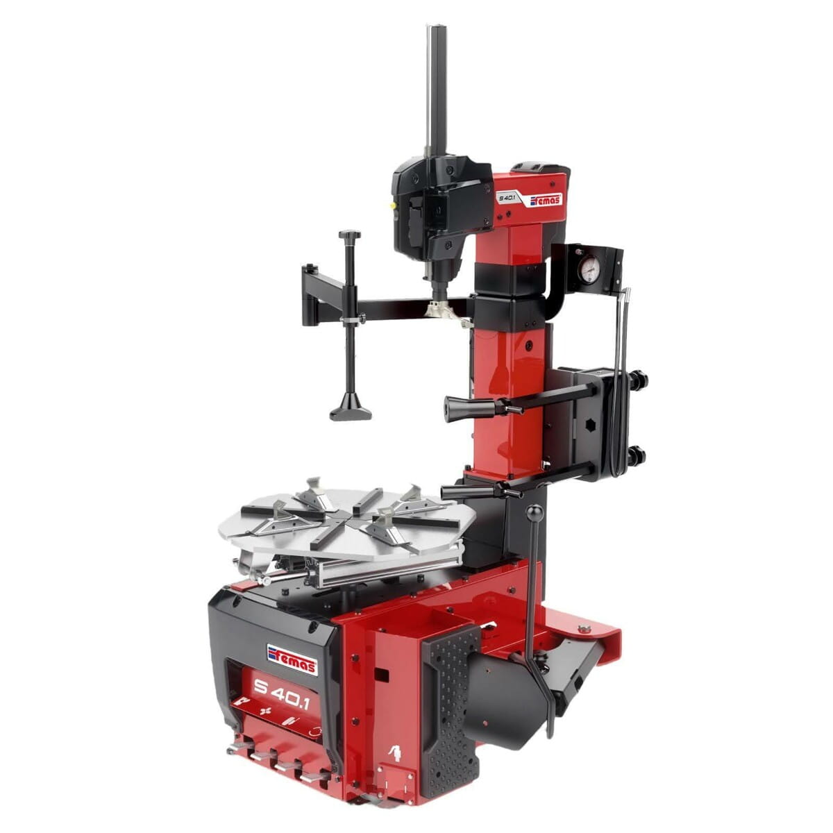 Montażownica Femas S40.1E charakteryzuje się bogatym wyposażeniem, które wspiera użytkownika na każdym etapie wymiany opon. W standardowym wyposażeniu znajdują się: