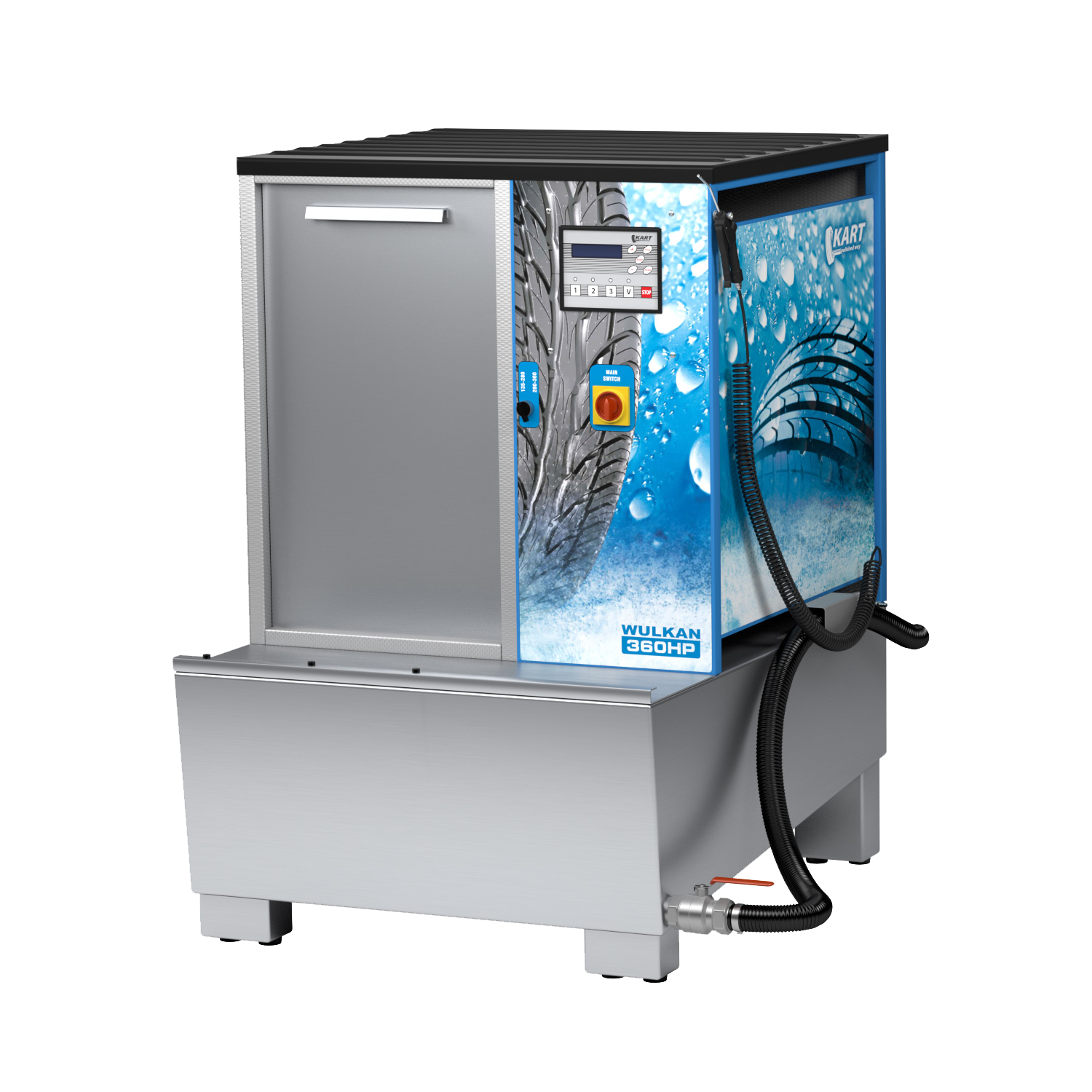 WULKAN 360HP wyróżnia się sterowaniem komputerowym oraz intuicyjnym oprogramowaniem dostępnym w 6 językach, co ułatwia obsługę. Siłownik z ramieniem umożliwia stabilizację węższych kół, co poprawia efektywność mycia.