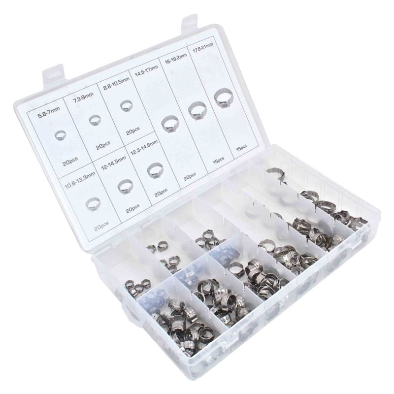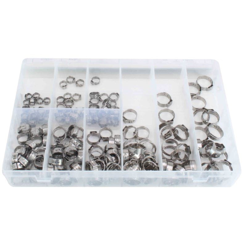 Opaski zaciskowe z pojedynczym uchem ASTA to wysokojakościowy produkt wykonany ze stali nierdzewnej SS304. Zapewniają one wyjątkową trwałość, odporność na korozję oraz niezawodność w różnych zastosowaniach. W zestawie znajduje się 170 sztuk opasek zaciskowych o różnych rozmiarach, co sprawia, że produkt jest idealny do szerokiego zakresu zastosowań w branży hydraulicznej, motoryzacyjnej i innych.