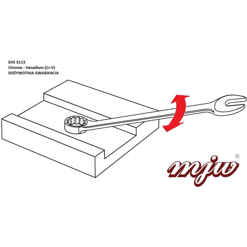 Produkowane z wysokiej jakości stali chromowo wanadowej. Bardzo wytrzymałe. Precyzyjnie wykonane. Wykonane zgodnie z Niemieckim Instytutem Normalizacyjnym DIN 3113, rozmiary metryczne. Główka oczka odchylona o 15° Główka widełkowa odchylona o 15° Rękojeść i kompaktowa główka zapewniają dużą poręczność. Idealne w przypadku trudnego dostępu.