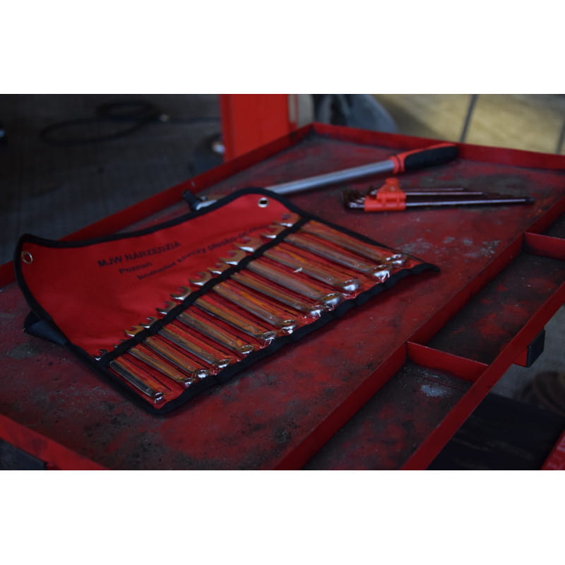 Komplet przeznaczony do napraw rolniczych, oraz maszyn budowlanych. Duże rozmiary niezwykle istotne przy naprawach mechanicznych przyczep, tirów, kombajnów, traktorów.