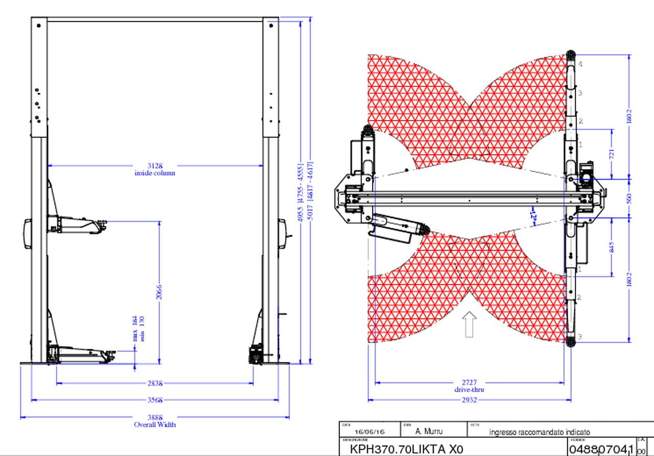 - Regulowana wysokość podejmowania pojazdu – 130 mm - 184 mm, dostosowuje się do różnych typów pojazdów.