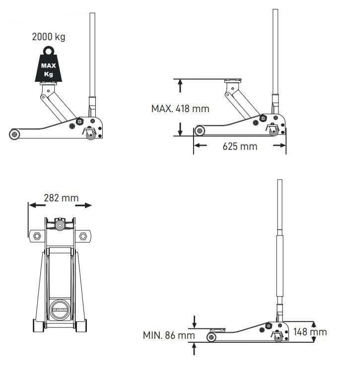 Maksymalna wysokość podnoszenia: 418 mm (sprawdza się w większości pojazdów)