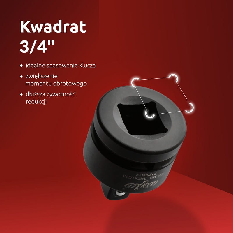 Profesjonalna redukcja udarowa MJW 3/4" na 1/2" to adapter klasy premium, wykonany z wysokowytrzymałej stali chromowo-molibdenowej (CrMo). Przeznaczony do intensywnej pracy z narzędziami udarowymi, gwarantuje wyjątkową trwałość i odporność na uszkodzenia mechaniczne oraz przeciążenia.
