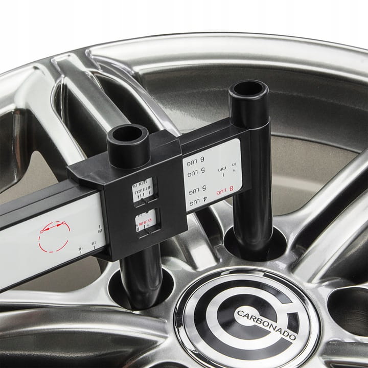 Precyzyjna suwmiarka (miernik) do szybkiego i dokładnego pomiaru rozstawu śrub w felgach stalowych oraz aluminiowych. Urządzenie przystosowane do felg 4‑, 5‑, 6‑ i 8‑otworowych, bez potrzeby dodatkowych akcesoriów.