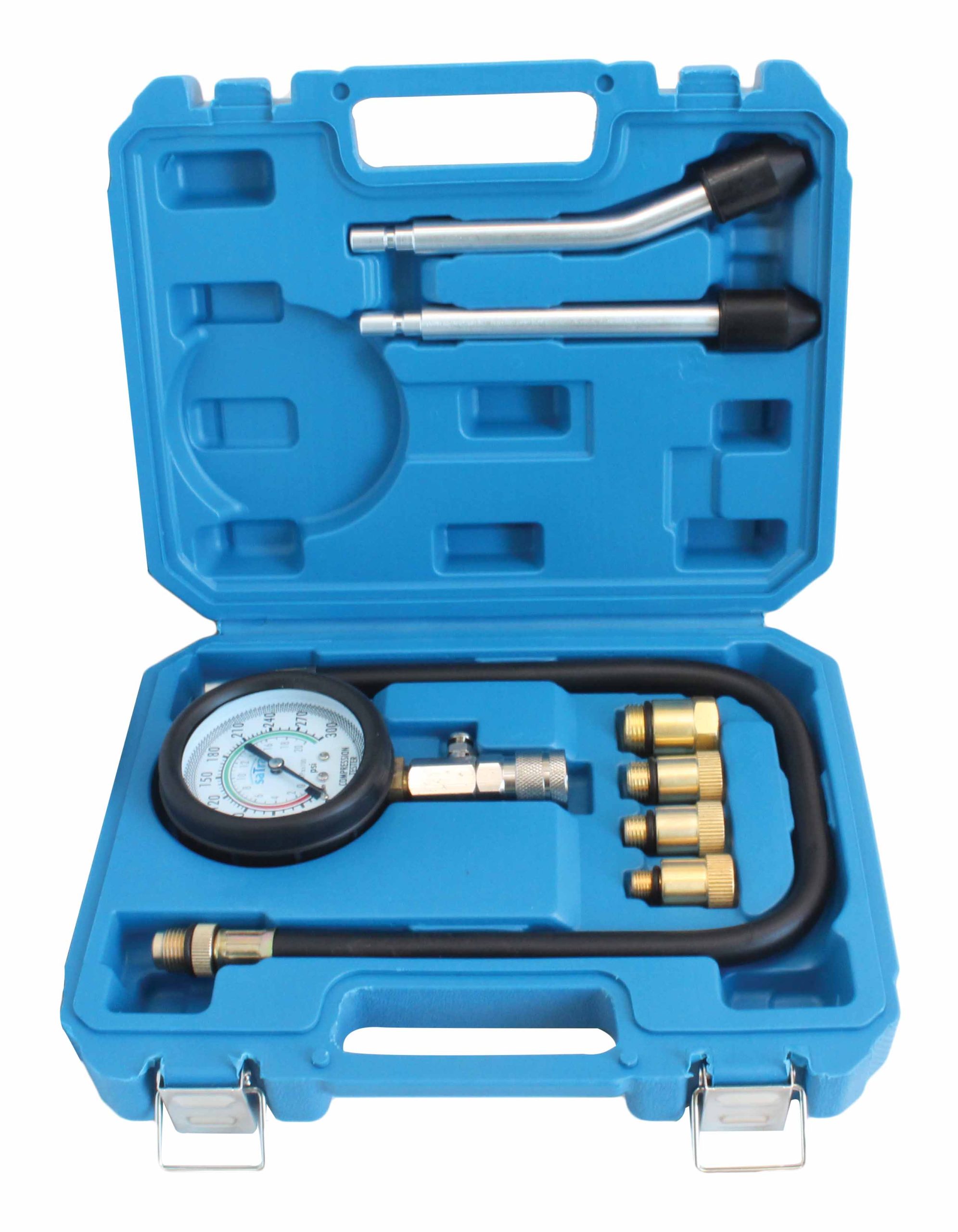Profesjonalny tester kontroli ciśnienia i sprężania zaprojektowany z myślą o szybkiej i precyzyjnej diagnostyce silników spalinowych, zwłaszcza tych z głęboko umieszczoną i trudno dostępną świecą zapłonową. Urządzenie umożliwia wielokrotny pomiar ciśnienia sprężania, co pozwala na dokładną ocenę stanu technicznego silnika benzynowego.